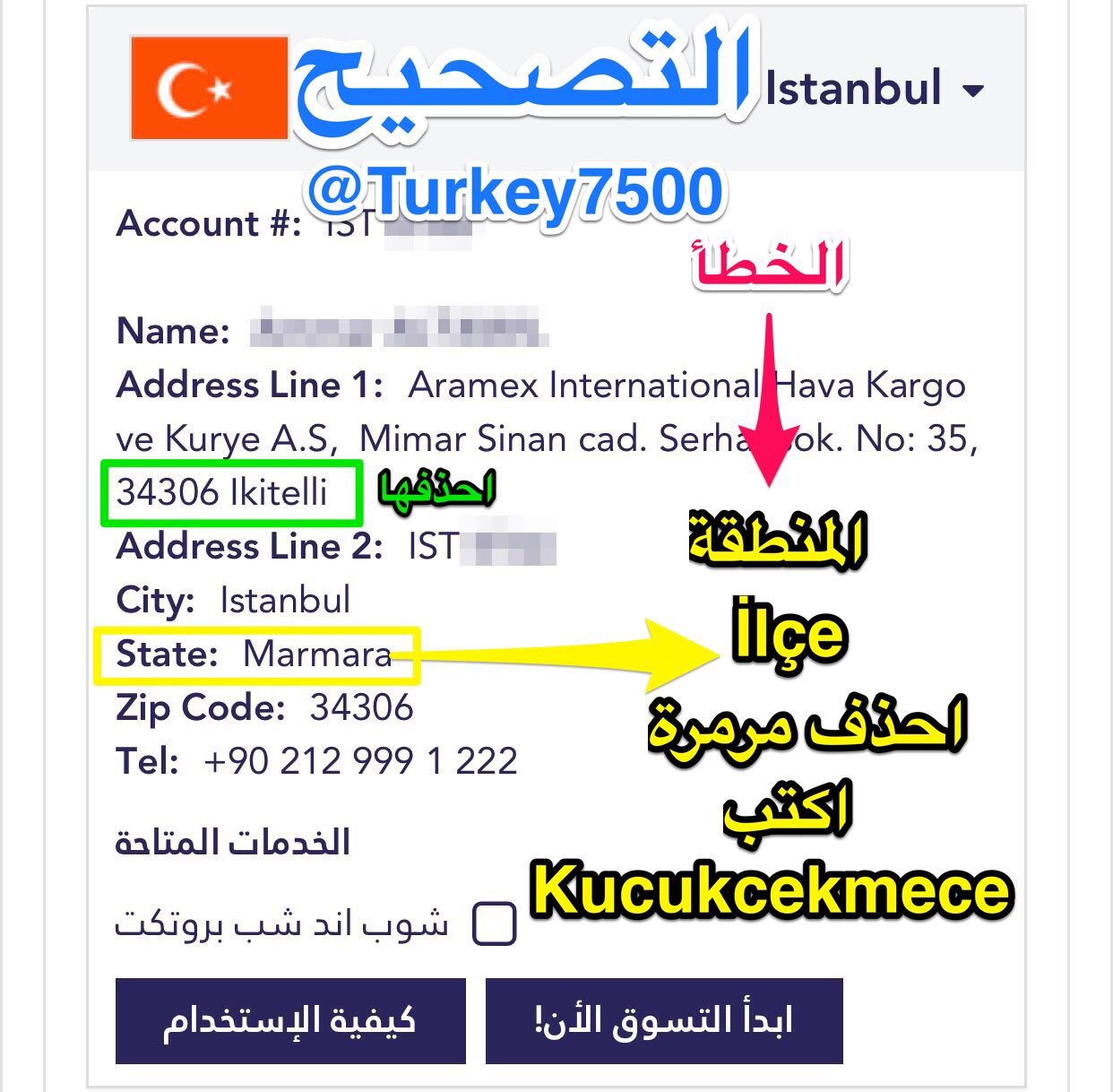 من اسطنبول בטוויטר تنويه لمن يستخدم شوب اند شيب من أرامكس في تركيا عنوان أرامكس خاطئ يحتاج تعديل المنطقة إلى Kucukcekmece بدل Marmara Cc Aramex Https T Co Drjxclodev