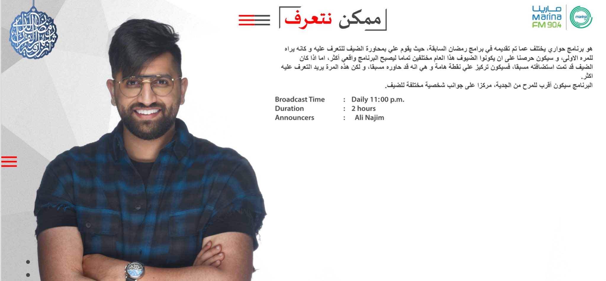 برنامج ممكن نتعرف ضيوف الحلقة محمد الحسيني و ياسر العيلة مع علي نجم marina fm 90 4. Https goo gl huc5cu الحلقة 4. اشترك بقناتنا على اليوتيوب ليصلك كل جديد. عايض يوسف تاريخ الحلقة.