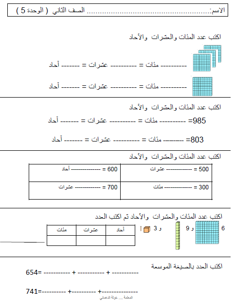 أوراق عمل عن الآحاد والعشرات. ورقة عمل الاحاد والعشرات والمئات رياضيات صف ثاني فصل ثاني.
