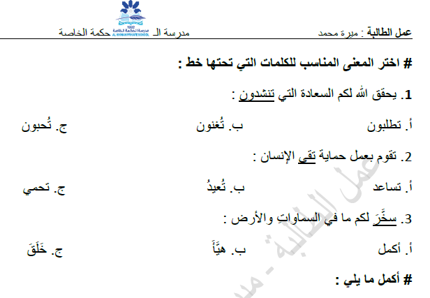 ورقة عمل للافعال الناسخة كان وأخواتها مدرسة الأمل النموذجية Al Amal Model School Facebook
