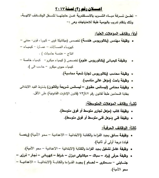 وظائف شركة المياه بالاسكندرية. موقع شركة المياه الوطنية للتوظيف. أعلنت شركة المياه الوطنية nwc عن توفر وظائف إدارية في مدينة الرياض لحملة البكالوريوس وفق المسميات والشروط التالية. وظائف شركة المياة والصرف الصحى بالاسكندرية 19 04 2019 اعلان رقم 1 لسنة 2019 شركة المياة والصرف بالاسكندرية 19 04 2019 ظائف الشركة القابضة لمياه الشرب و الصرف الصحي 2019 وظائف شركة المياه 2019 وظائف شركة المياه القاهرة 2019 وظائف. البوابة الالكترونية لشركة مياه الشرب بالاسكندرية الشركة الرائدة فى مجال تنقية وتوزيع وإمداد المواطنين بمياه الشرب النقية بالإسكندرية حيث تهدف الشركة الى كسب ثقة عملائها من خلال استخدام التكنولوجيا الحديثة.